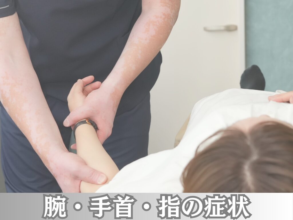 - 寝違え、五十肩、テニス肘、腕の痺れ、腱鞘炎、手首の痛み、ばね指