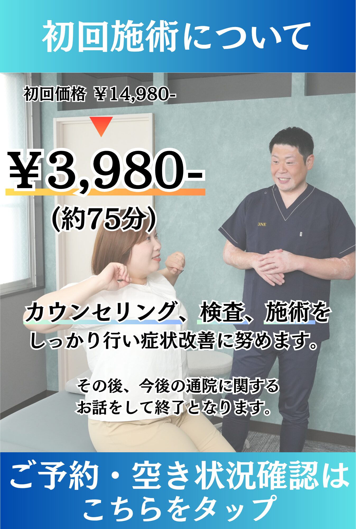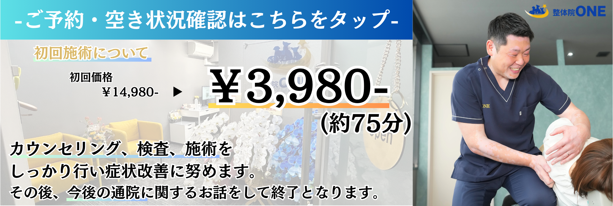 初回は受付〜お会計まで75分前後いただきます。
